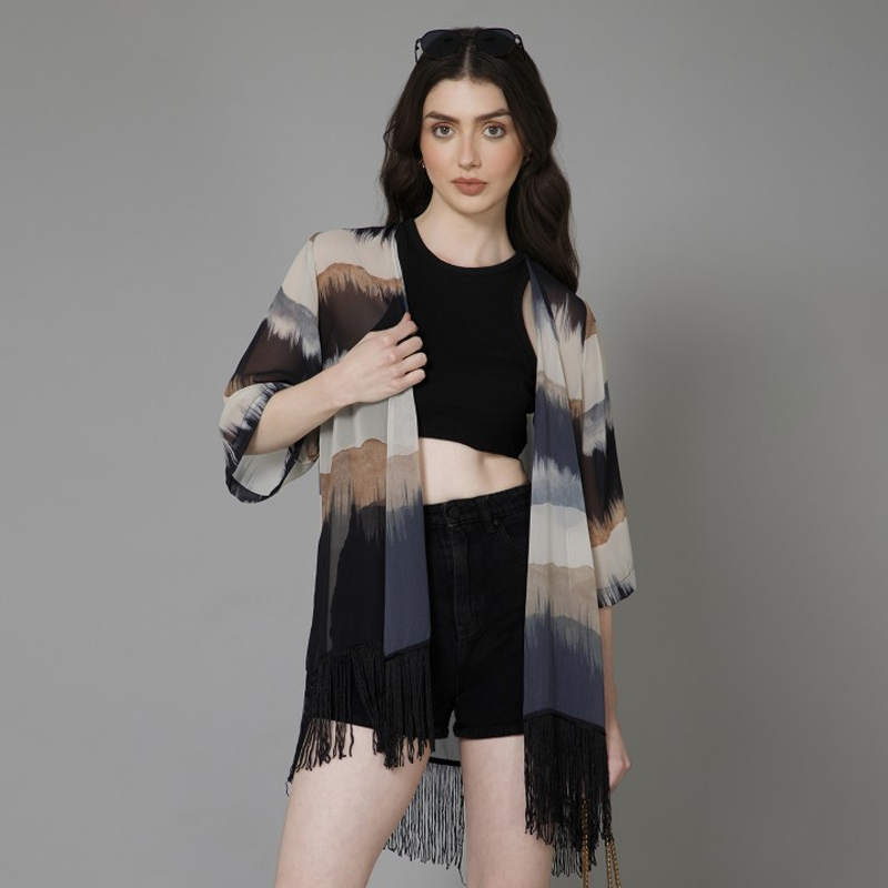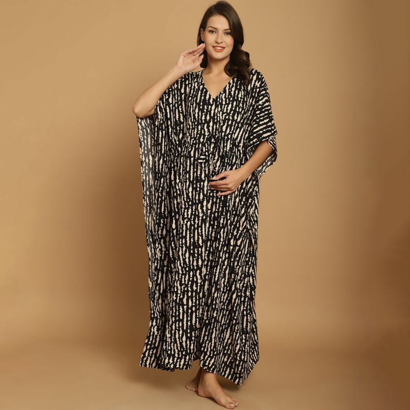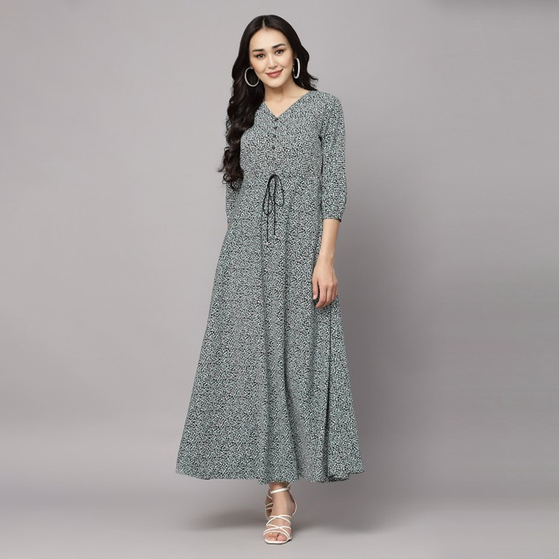 Brown & Black Ethnic Motifs Print Maxi Dress