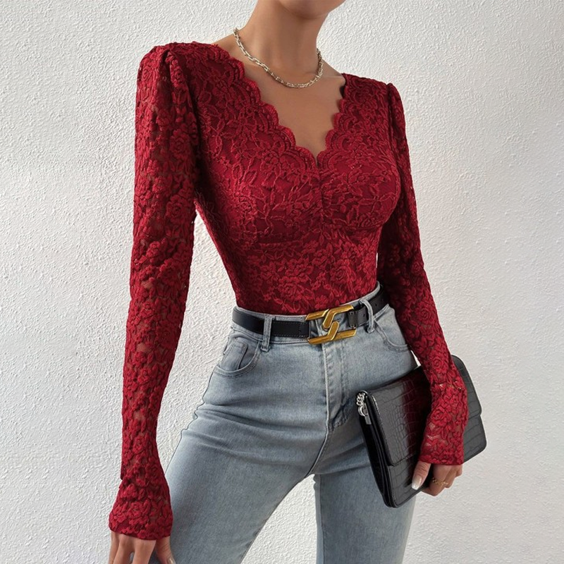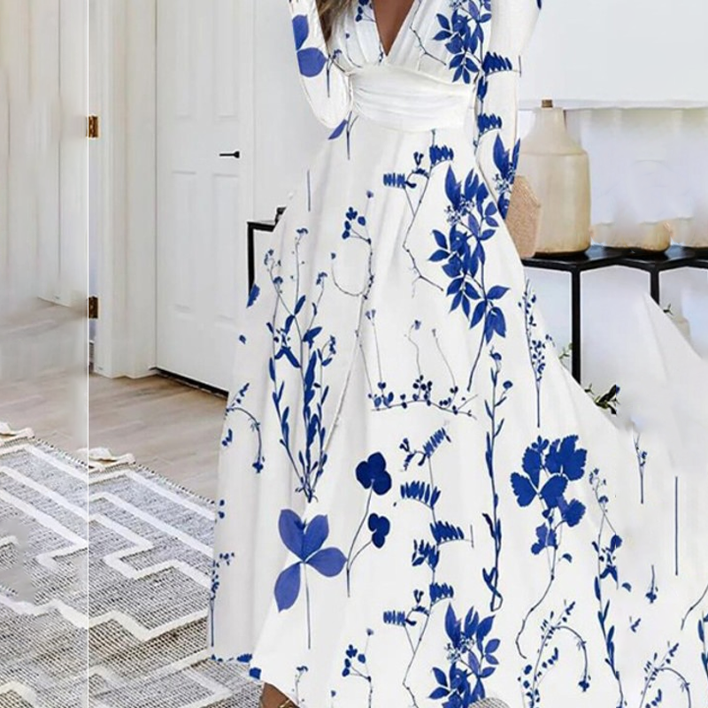 V-Neck Cuffed Sleeves Layered Maxi Dress