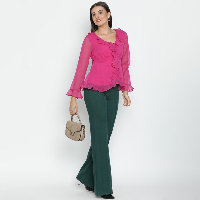 Purple solid lehenga choli with dupatta, patchwork detail Purple solid ready to wear blouse, has a v-neck, sleeveless, zip closure, patchwork detail Purple solid ready to wear lehenga, has zip closure, flared hem Purple solid dupatta, solid border Size & Fit The model (height 5'8) is wearing a size S Material & Care Blouse Fabric: Georgette Lehenga Fabric: Georgette Dupatta Fabric: Georgette Dry Clean